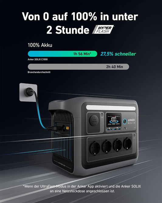 Anker SOLIX C1000 Powerstation 1056Wh, 1800W, mit Tasche & 4 AC-Steckdosen