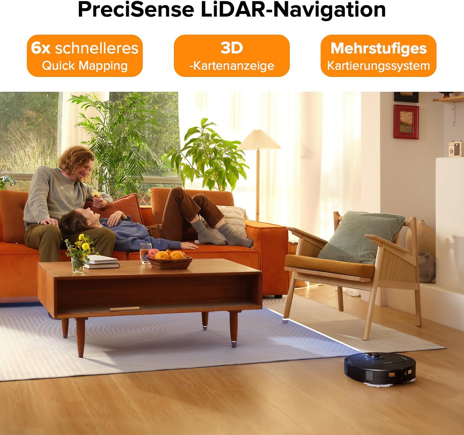• Die HyperForce Saugkraft wurde auf 7000 Pa erhöht. Das bedeutet, dass dein Saugroboter noch tieferliegende Rückstände und Staubpartikel erreichen und von Hartböden und Teppichen aufnehmen kann.