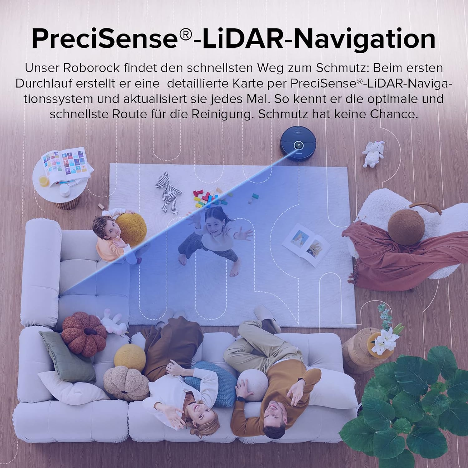 - 【Präzisionsnavigationssystem】 Das Präzisionsnavigationssystem erstellt detaillierte Karten, um eine optimale Route für eine schnellere Reinigung zu finden. Der S8 roboter staubsauger kann leicht feststeckende Stellen automatisch erkennen und unsichtbare Wände in der Roborock-App zeichnen, um No-Go-Zonen einzurichten.